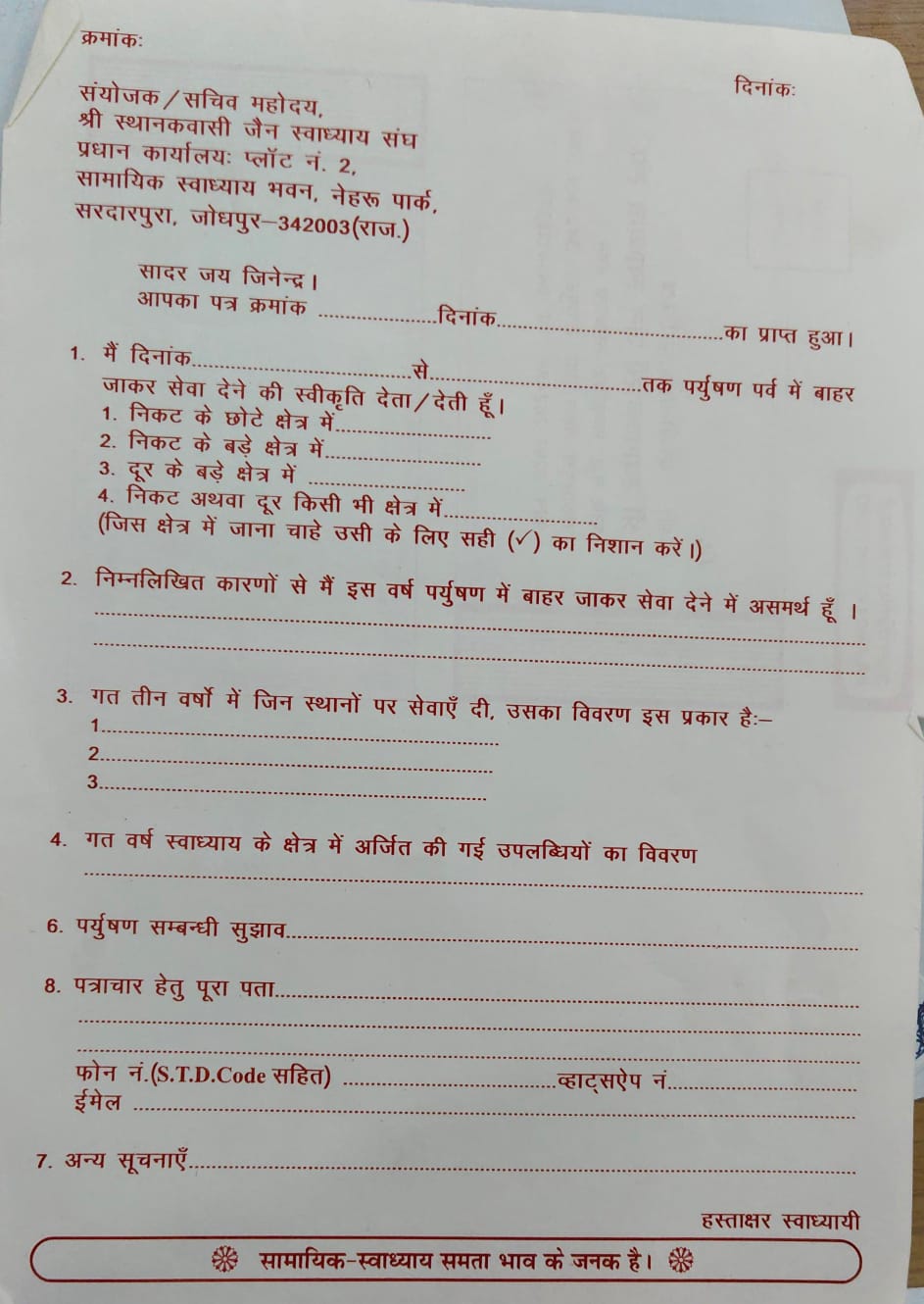 - स्वाध्यायियों को पर्युषण में सेवा देने हेतु प्रेरित करना।